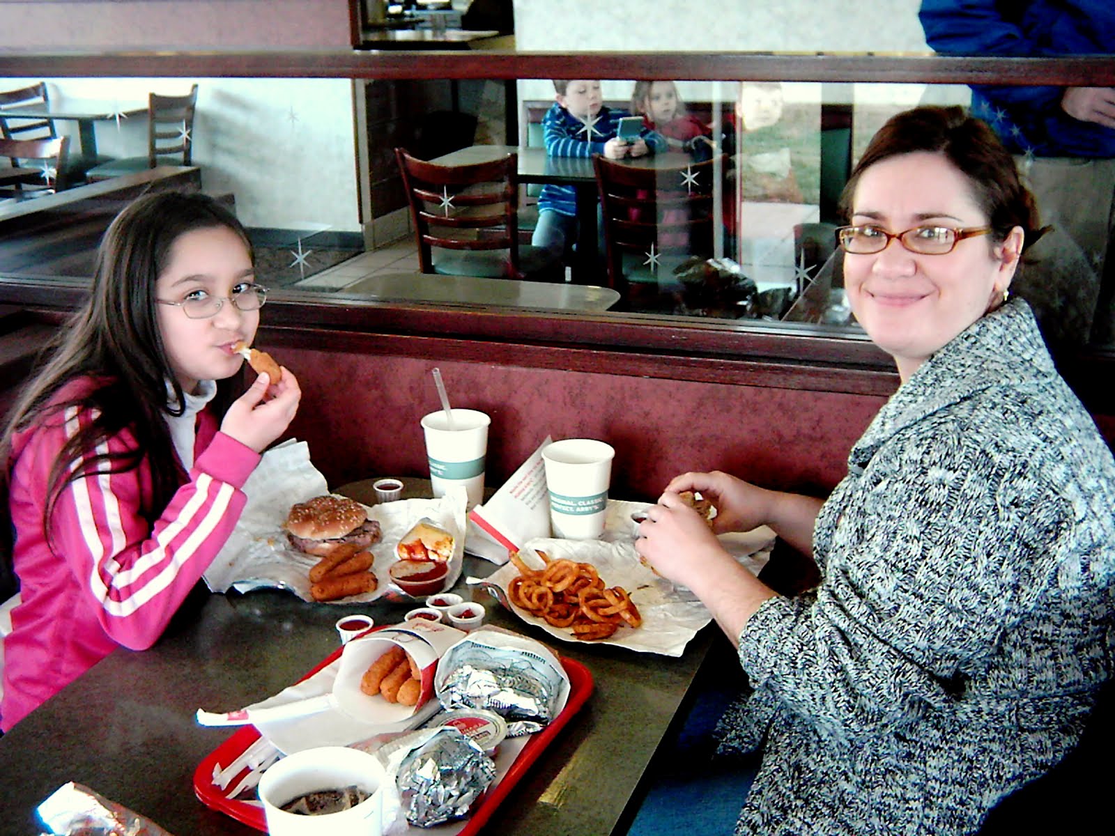 After church we got Chinese food, but I think I did really good. I got a child-sized version of chicken with veggies and steamed rice...the chicken is grilled instead of fried and the sauce was pretty light. I didn't eat any egg rolls, or crab rangoon, not even the fortune cookie. Okay, I did have a couple of bites of my daughter's sweet and sour chicken, but I am only human! After lunch we had a few errands to run, nothing exciting, but THEN we got frozen yogurt again! I still got plain and it was good, although not quite as good as last time. (Why is it that things are never as good the second time?)